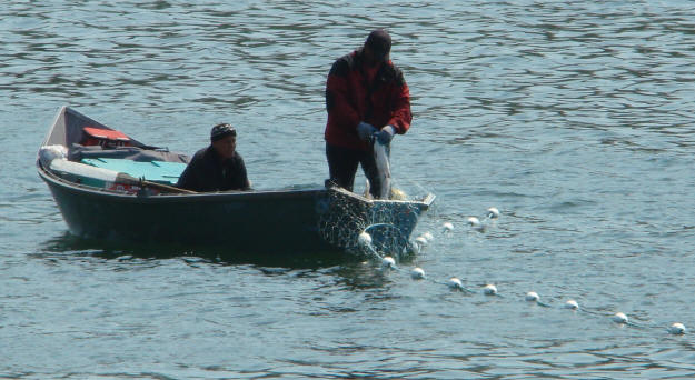 width of the river as far as I could see up the river. Below are photos sent to us by Sherrie of Yurok Tribe netting salmon at the mouth of the Klamath River.
