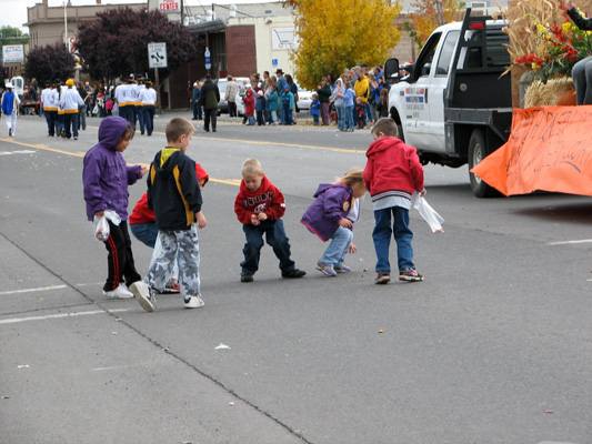 parade floats throw candy, and little kids scramble to see who can get there