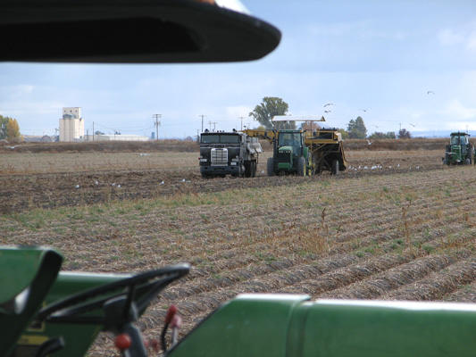 Dave Verley Farms is harvesting potatoes. It's a little muddy after last night's rain.