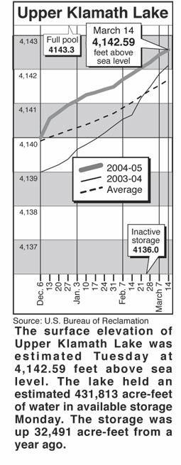 acre-feet from a year ago. River flow Link River 2005 2004 March 10 276 575 March 12 291 940 March 14 350 861 March 9 316 1,037 March 11 488 1,003 March 13 333 1,204 Klamath River at Iron
